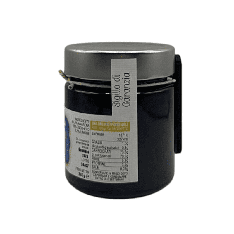Jam made with selected Black Cherries, grown in the Roccamonfina-Foce del Garigliano Regional Park, at km 0, handcrafted by NobiliRadici without the use of chemical products such as preservatives, gelling agents or pectins.