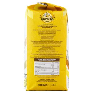 Re-milled Caputo semolina it has a Yellow Amber color, calibrated grain size and gluten elasticity make it ideal for artisan pasta factories, fresh pasta, Altamura durum wheat bread and for dusting on the pizza chef's counter.