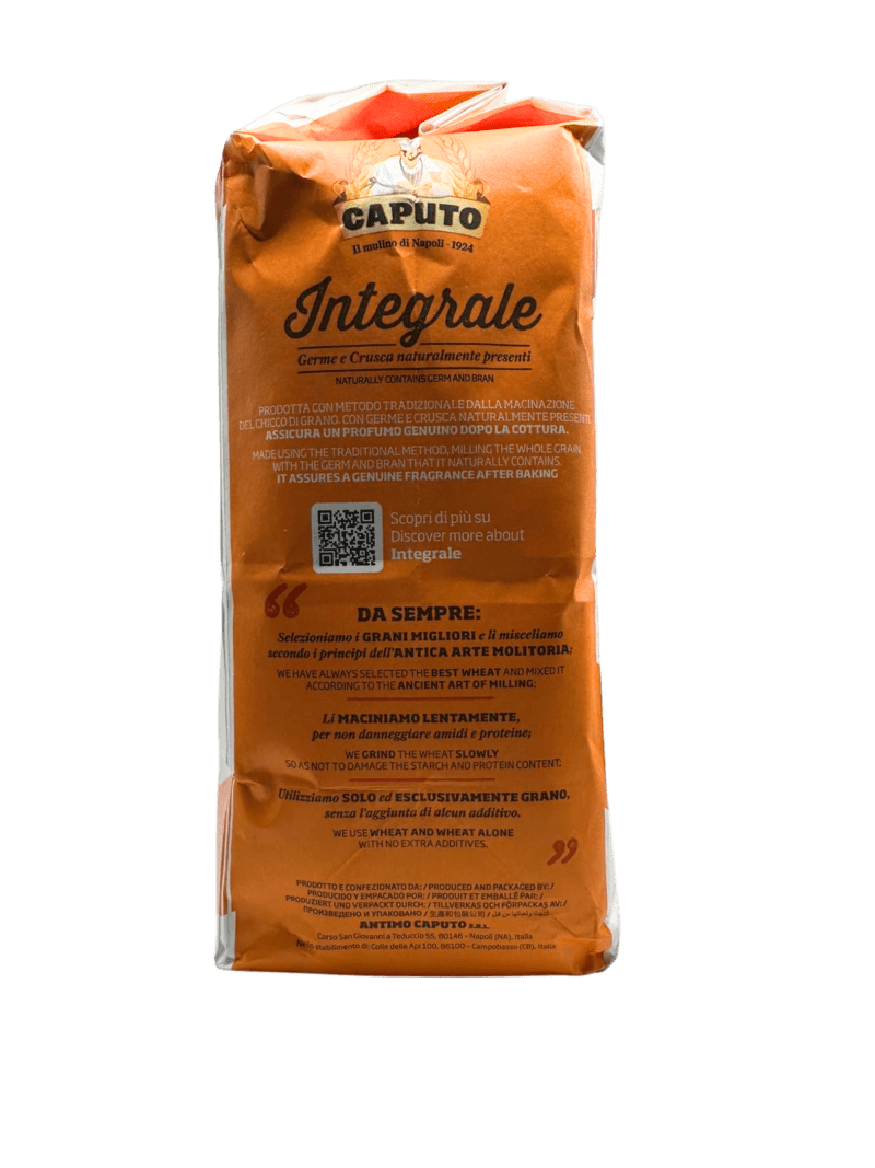 Farina integrale ricca di fibre, prodotta con metodo tradizionale, dalla macinazione integrale del chicco di grano. Ricca di germe e fibra, assicura un profumo genuino dopo la cottura.