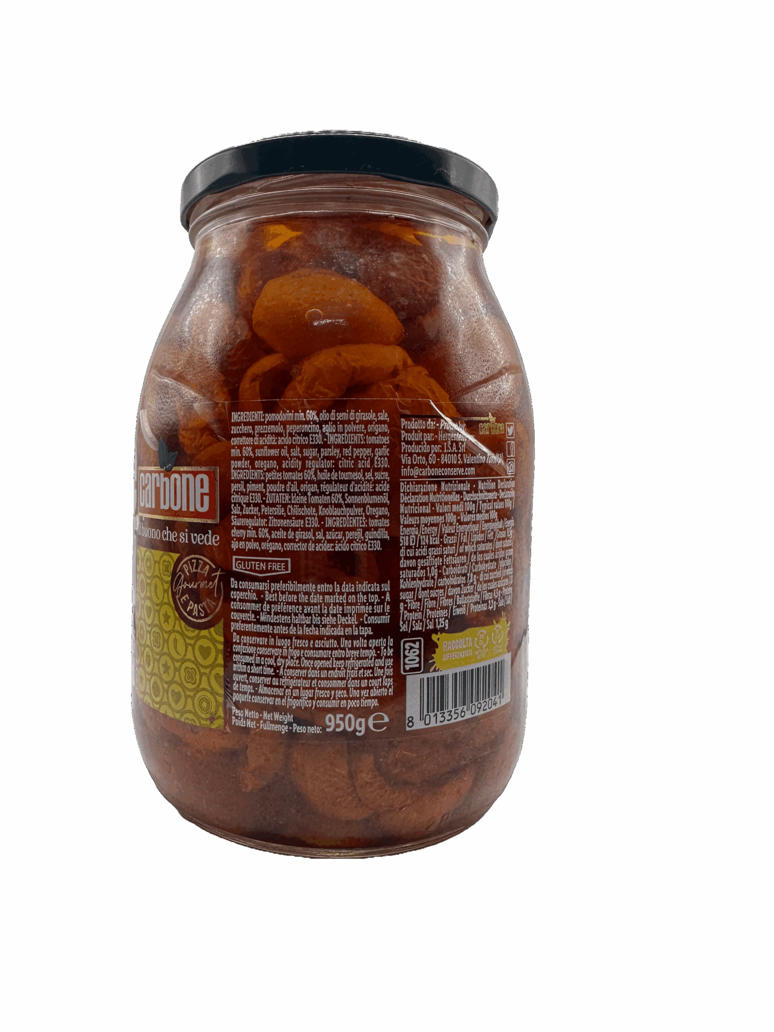 Pomodorini tagliati a metà, essiccati leggermente e arieggiati, in modo da esaltare al massimo la fragranza e la dolcezza dei pomodorini a grappolo. Conditi con olio, sale, prezzemolo, peperoncino, aglio e un po’ d’ origano sono ideali sulla pizza.